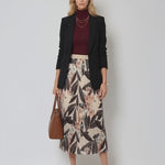 Fustă lungă plisată cu bandă elastică în talie negru-alb