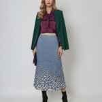 Fustă lungă plisată cu buline și bandă elastică albastru jeans