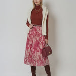 Fustă lungă plisată cu curea și print floral ciclam atrage privirile prin culoarea intensă și croiala lejeră. Cureaua inclusă accentuează talia, iar pliurile vaporoase din voal conferă dinamism și eleganță. Ideală pentru evenimente de zi sau ieșiri casual pline de stil.