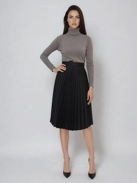 Fustă plisată cu curea neagră este alegerea ideală pentru un look elegant și mereu în tendințe. Culoarea clasică se potrivește oricărei ocazii, iar croiala lejeră oferă confort pe parcursul întregii zile.