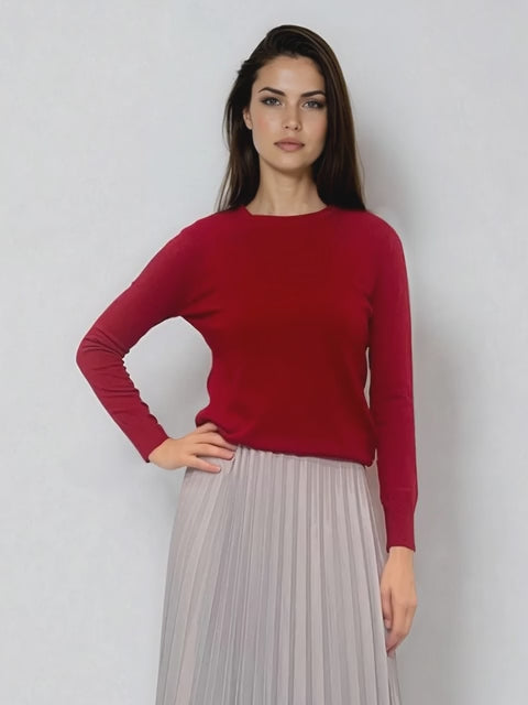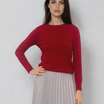 Pulover călduros cu guler rotund grena este alegerea perfectă pentru sezonul rece, datorită texturii moi și a designului clasic cu guler rotund. Confortabil și elegant, poate fi purtat cu ușurință atât la birou, cât și în combinații sofisticate de weekend.