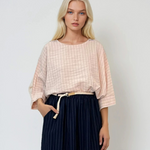 Bluză cu mânecă fluture și dungi roz
