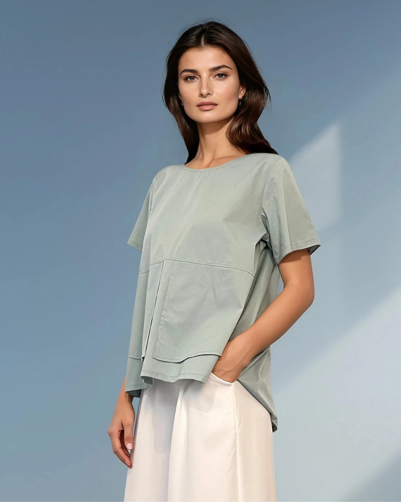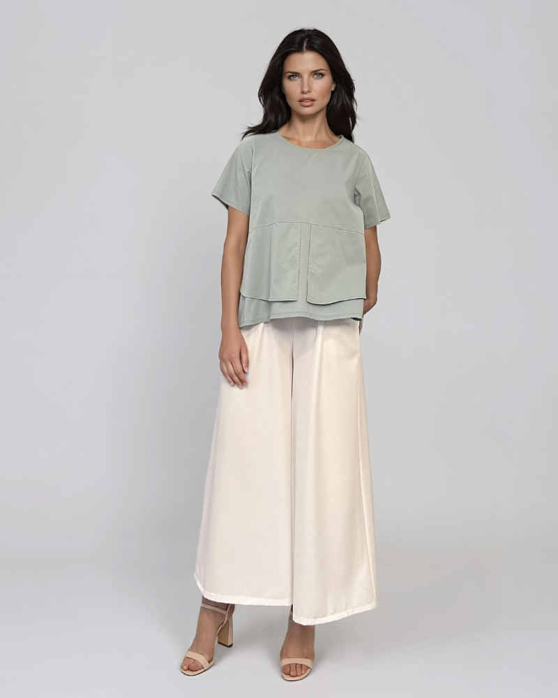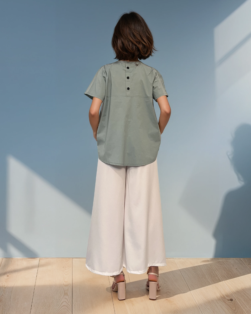 Bluză din bumbac cu mânecă scurtă și nasturi decorativi aqua aduce un aer proaspăt și feminin garderobei tale. Realizată din bumbac confortabil, este ideală pentru ținute de zi sau birou. Cei trei nasturi decorativi de pe spate completează designul modern.