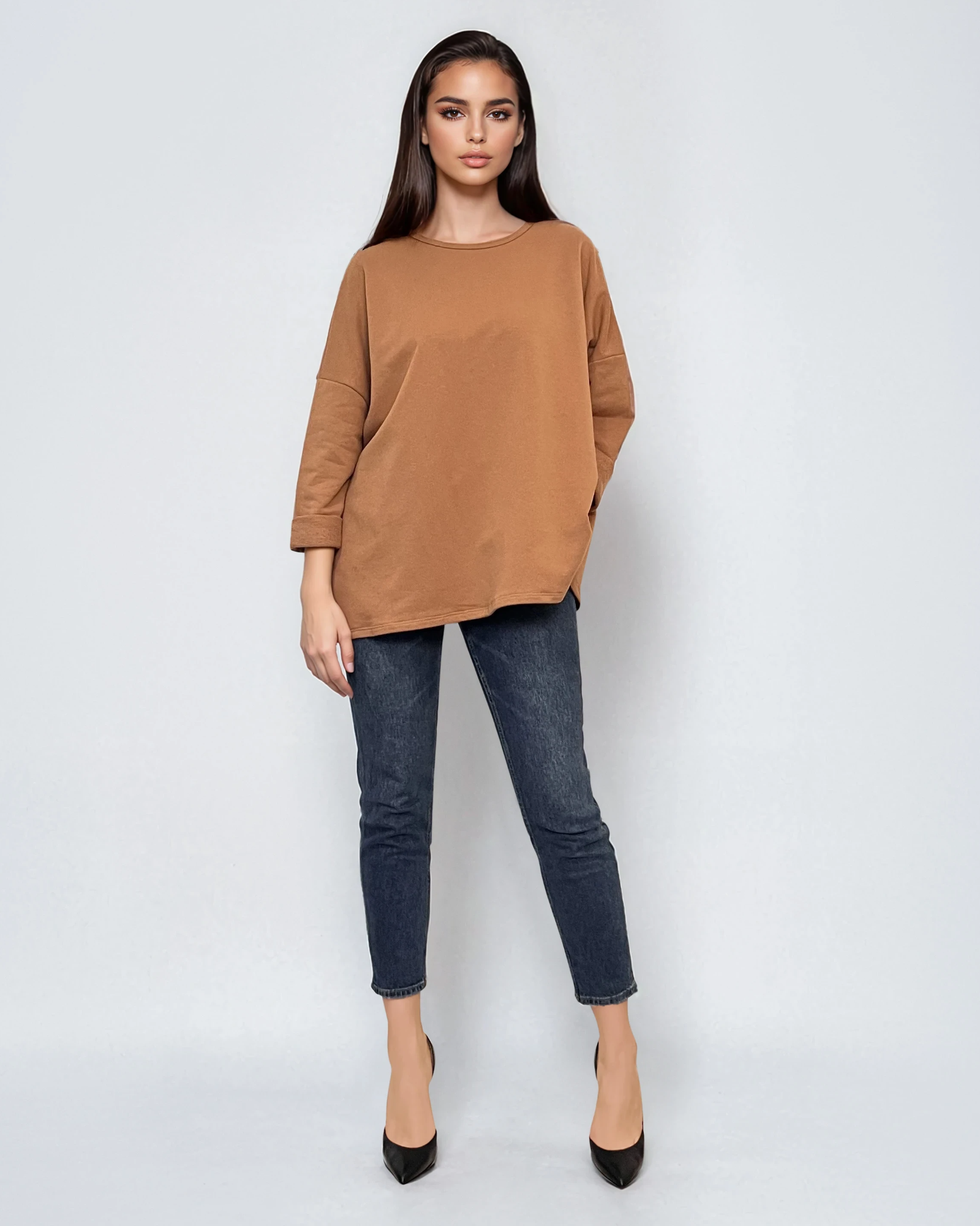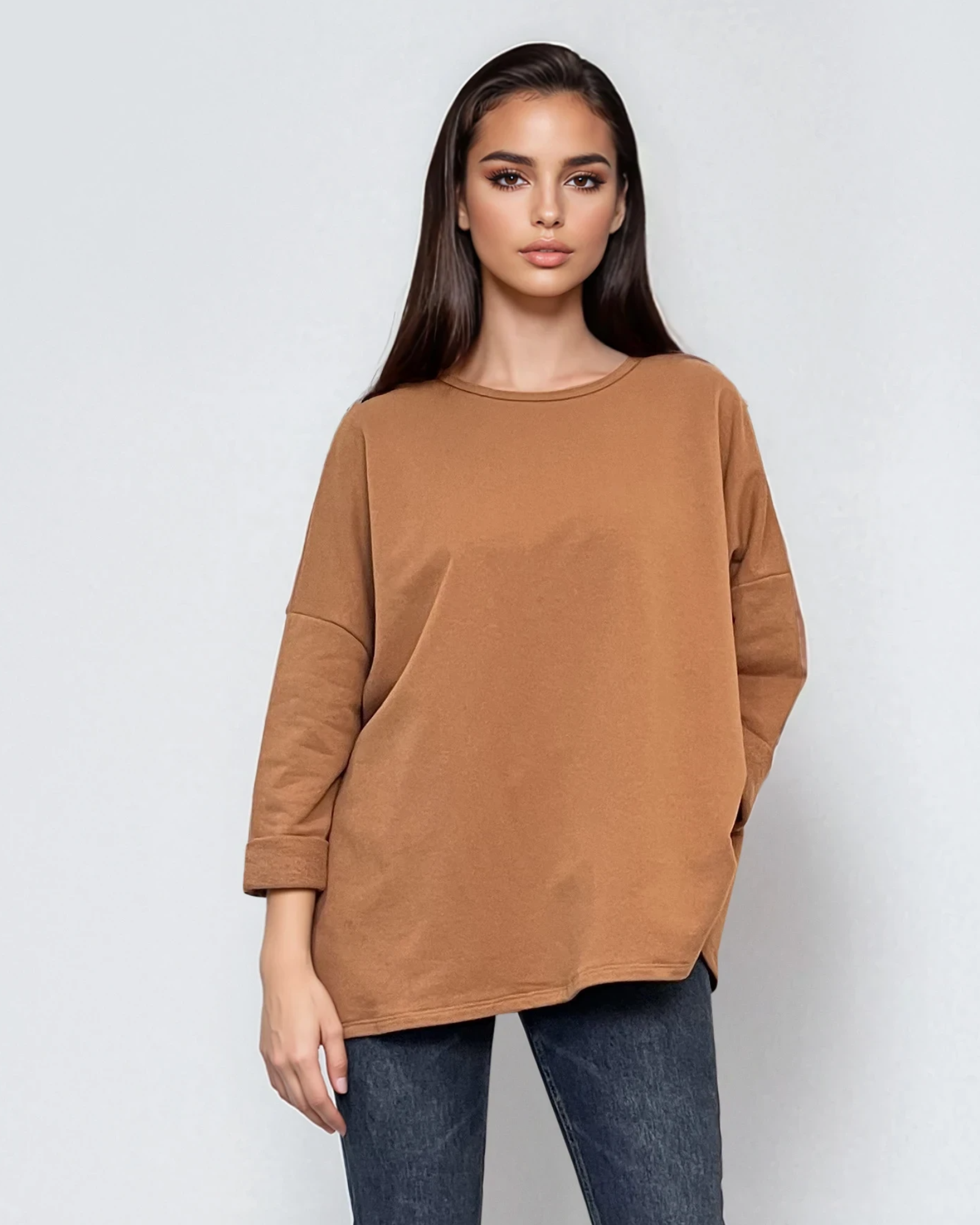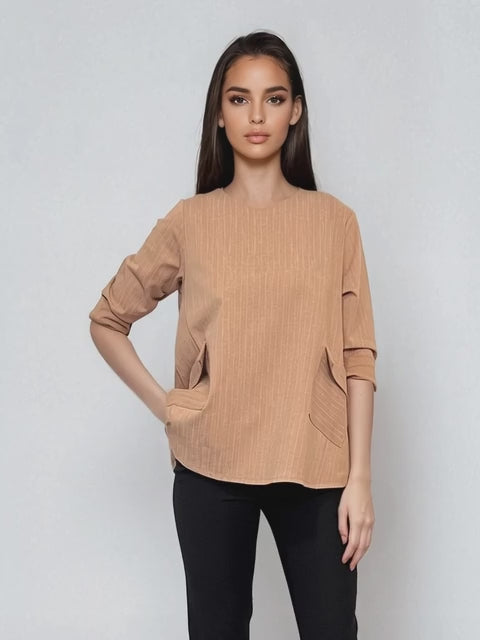 Bluză largă din bumbac cu mânecă 3/4 beige combină confortul și stilul casual pentru ieșiri în parc sau picnicuri. Croiala lejeră pe talie se potrivește perfect pentru mărimile S–L și XL, oferind libertate de mișcare și versatilitate.