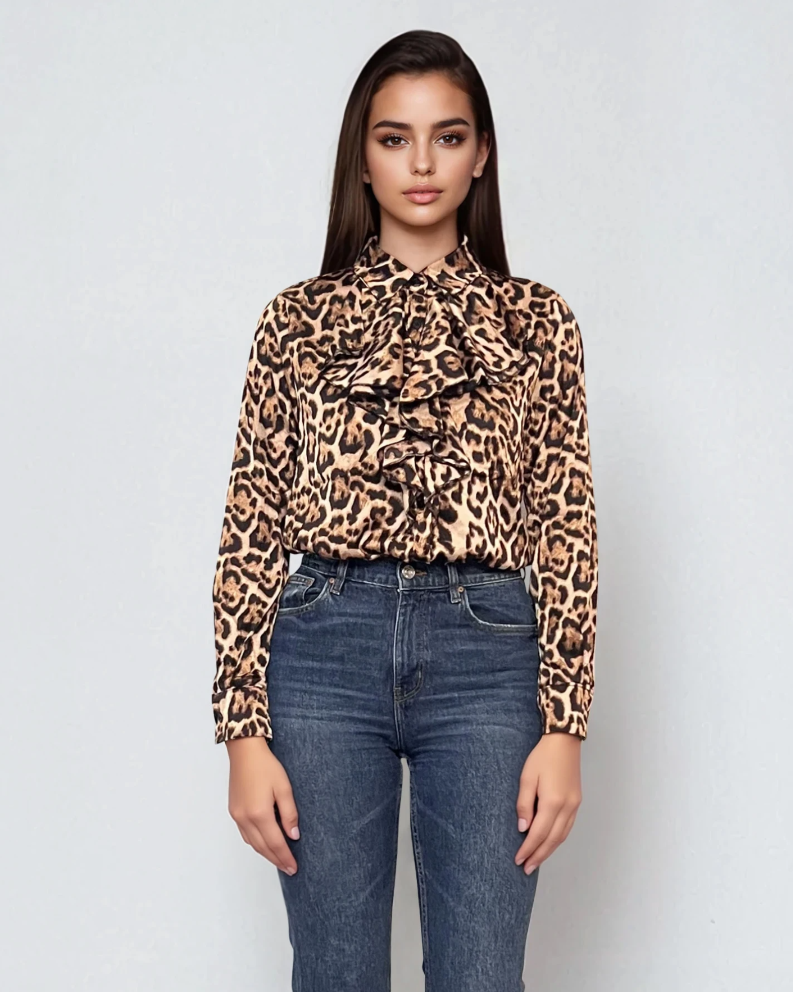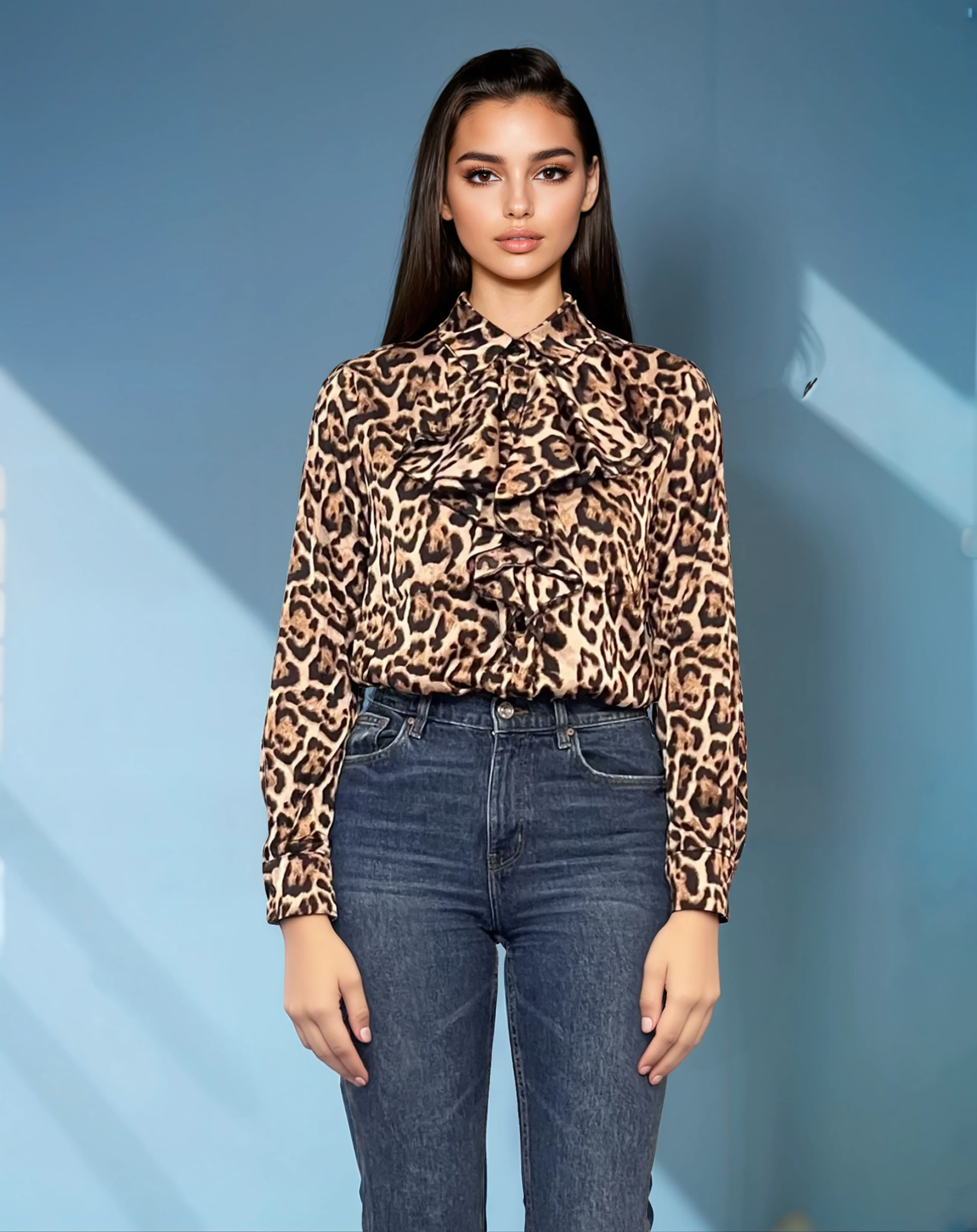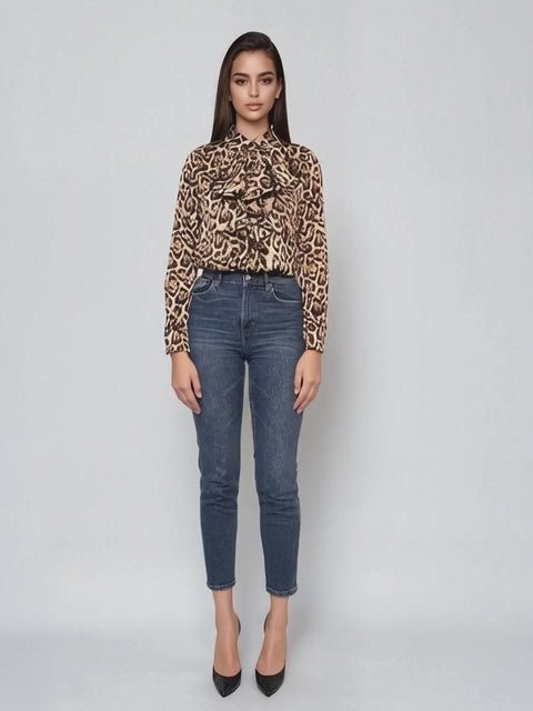 Bluza vâscoză cu volane, mânecă lungă, animal print, oferă un look stilat atât pentru ținute casual cu blugi, cât și pentru seri elegante. Materialul fluid și croiala lejeră asigură confort pe tot parcursul zilei.