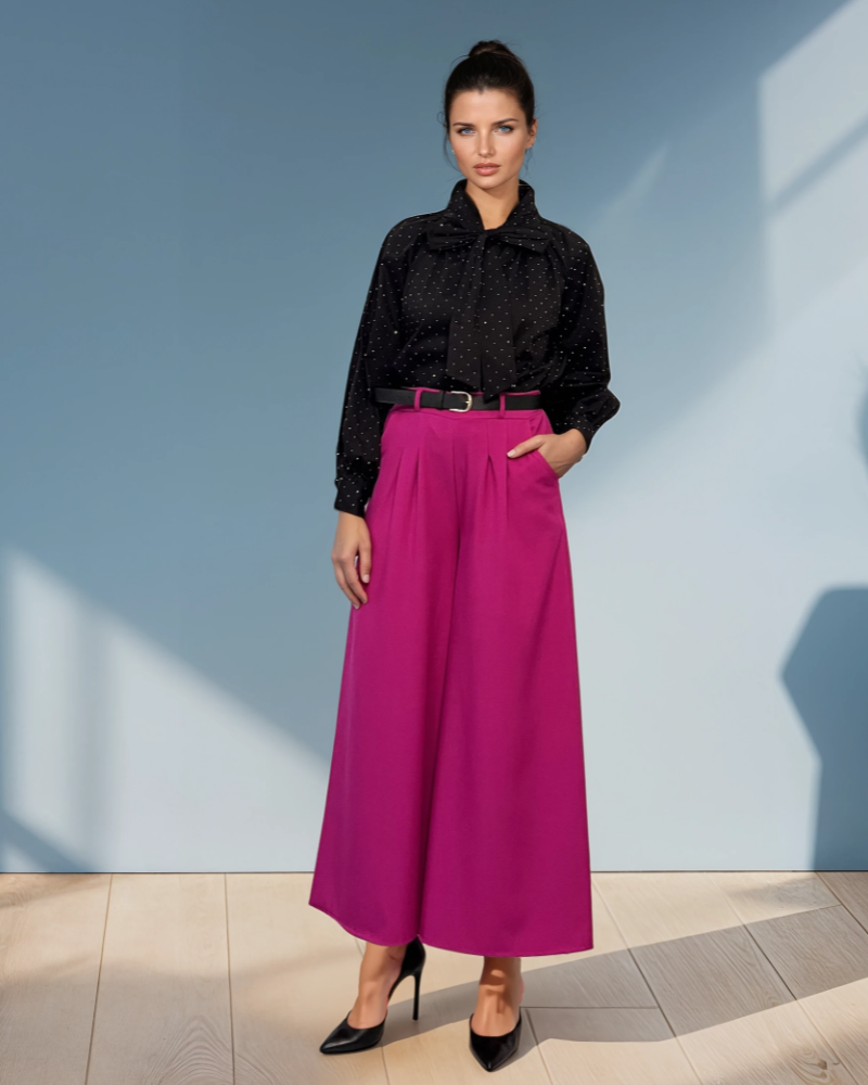 Cămașă din bumbac cu strasuri și fundă negru aduce un aer rafinat și contemporan garderobei tale. Strasurile mici creează un efect discret de strălucire, iar croiala lejeră oferă confort pe tot parcursul zilei. Perfectă pentru ținute elegante sau smart casual.