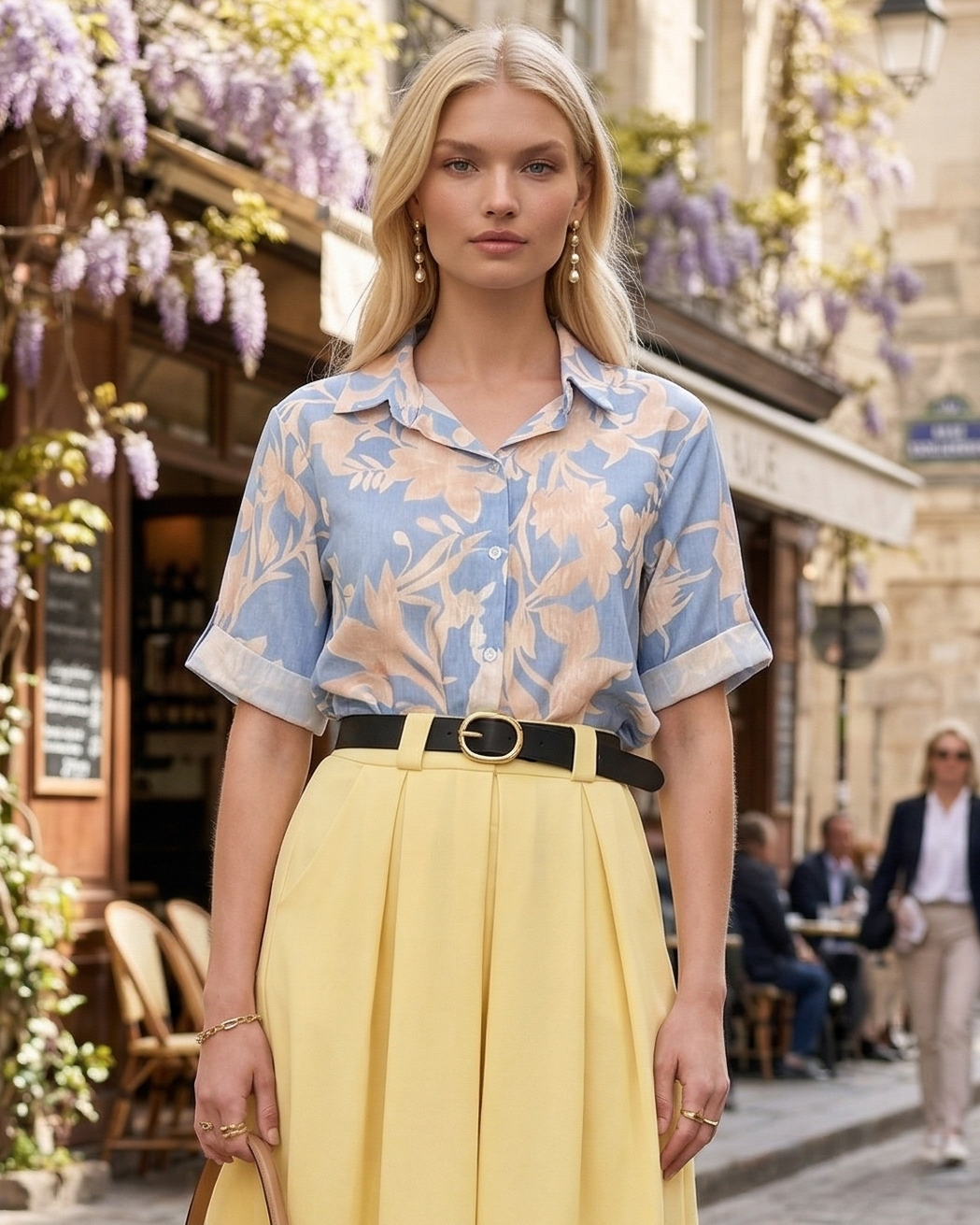 Cămașă cu mânecă scurtă cu print floral bleu aduce un aer fresh și delicat garderobei tale, fiind alegerea ideală pentru zilele călduroase. Designul lejer și imprimeul floral conferă un look feminin și relaxat, perfect pentru ținute casual sau de vacanță.