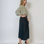 Fustă midi cu buzunare și nasture negru este o piesă clasică și indispensabilă într-o garderobă funcțională. Designul minimalist, completat de nasture frontal și buzunare, oferă echilibru între utilitate și stil.