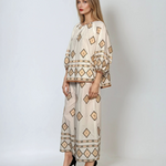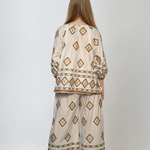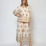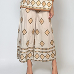 Fustă-pantalon largă cu broderie geometrică și talie elastică alb este o piesă versatilă și modernă, perfectă pentru zilele călduroase de vară sau primăvară. Croiala fluidă și materialul din bumbac oferă confort maxim, iar broderia geometrică adaugă un detaliu distinct și stilat.