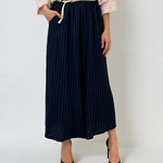 Fustă pantalon largă din in cu dungi bleumarin