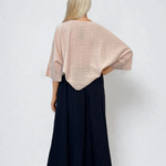 Fustă pantalon largă din in cu dungi bleumarin oferă un look rafinat și relaxat în același timp. Confecționată din in, cu croială amplă, buzunare și curea inclusă, este o alegere ideală pentru confort urban cu stil.