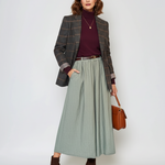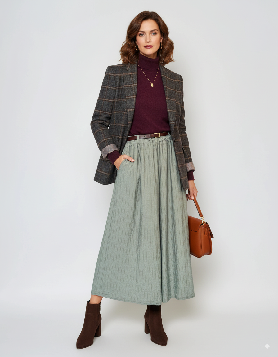 Fustă pantalon largă din in cu dungi kaki aduce o combinație reușită de stil și confort. Cu buzunare practice și curea inclusă, este o piesă versatilă, ideală pentru zilele de vară petrecute în oraș sau în natură.