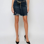 Fustă scurtă denim albastru cu buzunare, curea tip lanț și accesoriu portofel inclus este alegerea perfectă pentru un look casual, modern și practic. Materialul denim de calitate oferă rezistență și stil în orice sezon.