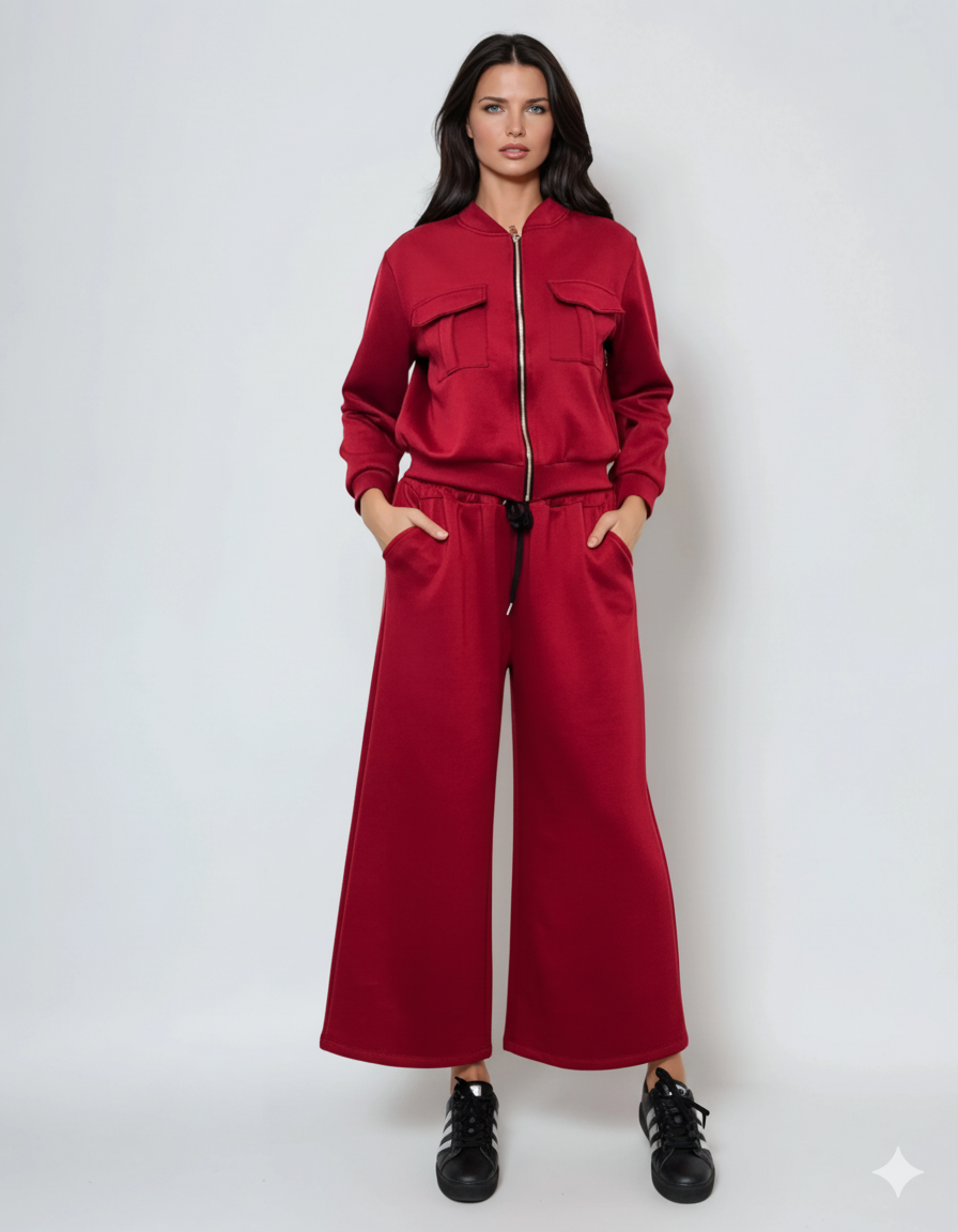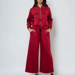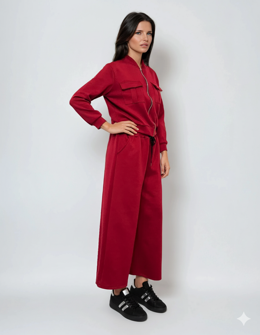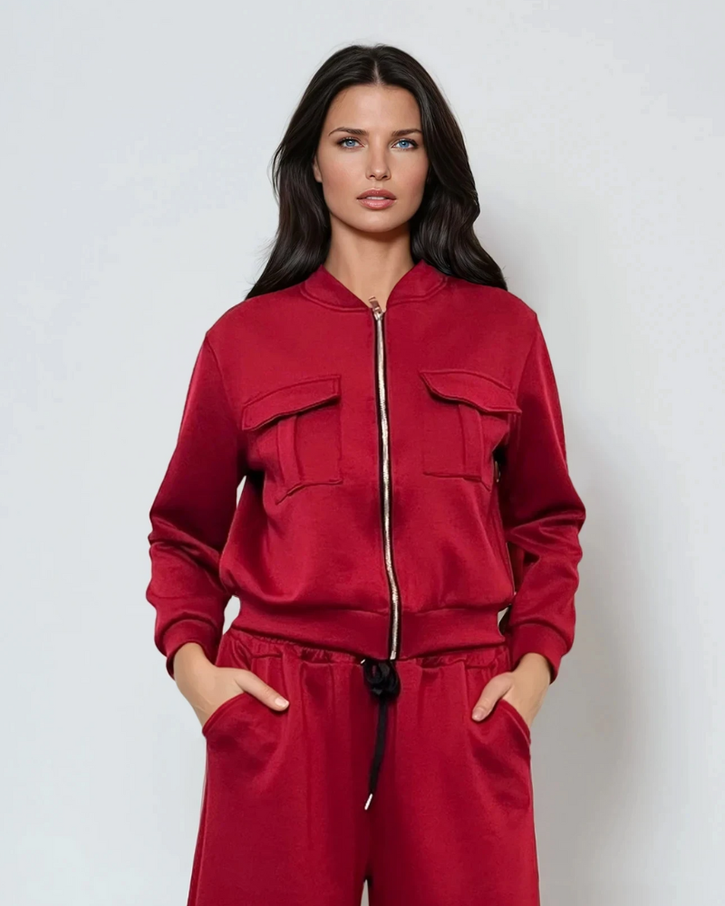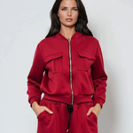 Jachetă grena cu buzunare și fermoar, perfectă pentru un look casual și relaxat. Croiala confortabilă și culoarea intensă adaugă un plus de personalitate ținutelor tale de zi cu zi.