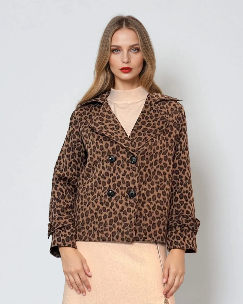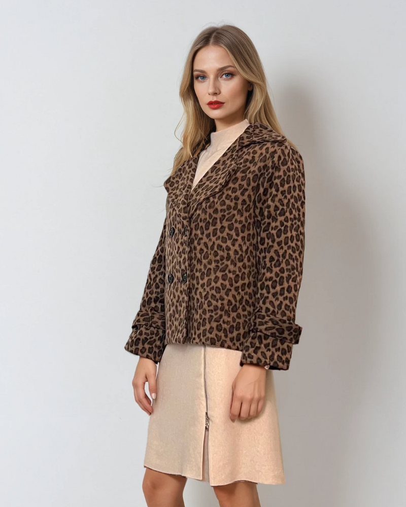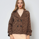 Jachetă scurtă cu nasturi mari ?i imprimeu animal-print