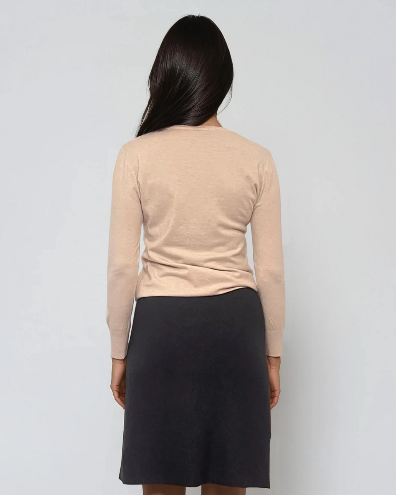 Pulover cu decolteu în V moale și confortabil off white este o piesă luminoasă și elegantă, ideală pentru a adăuga rafinament ținutelor tale casual sau office.