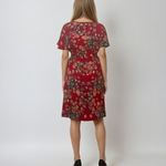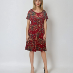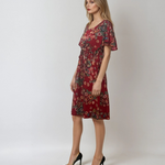 Rochie midi cu print floral și șnur în talie roșu este o alegere feminină și comodă pentru sezonul cald. Croiala lejeră, cu decolteu rotund și cordon ajustabil, evidențiază silueta într-un mod subtil. Confecționată din vâscoză ușoară, rochia este ideală pentru plimbări, vacanțe sau ieșiri în oraș.