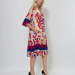 Rochie vaporoasă cu print floral ciclam și mânecă clopot aduce un plus de feminitate și prospețime garderobei tale. Perfectă pentru plimbări în parc sau evenimente casual în aer liber, această rochie combină confortul cu un design delicat.