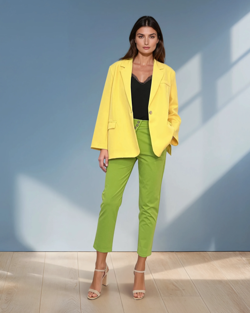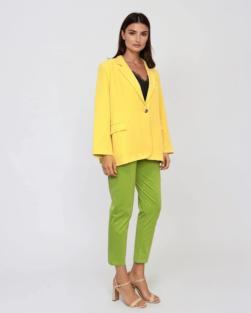 Nuanta galbenă este potrivită pentru outfituri de primăvară-vară sau pentru a scoate în evidență o ținută office simplă, transformând-o într-una remarcabilă.