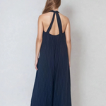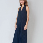 Salopetă în dungi cu spatele gol bleumarin