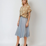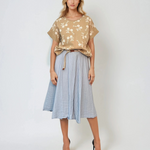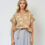 Tricou cu flori brodate și șiret în talie beige este alegerea perfectă pentru un look simplu, dar elegant. Nuanța caldă și naturală pune în valoare broderia delicată și croiala fluidă.