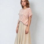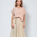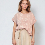 Tricou cu flori brodate și șiret în talie roz aduce o notă jucăușă și romantică în garderoba ta. Detaliile brodate florale îi oferă un aer feminin, iar șiretul din talie permite ajustarea pentru o siluetă delicată.