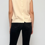 Vestă pe gât cu nasturi decorativi crem, ideală pentru ținute elegante și feminine. Detaliile aurii aplicate pe spate oferă un plus de rafinament, în timp ce materialul cu vâscoză oferă confort termic și fluiditate. Se poartă excelent cu pantaloni conici sau fuste midi.