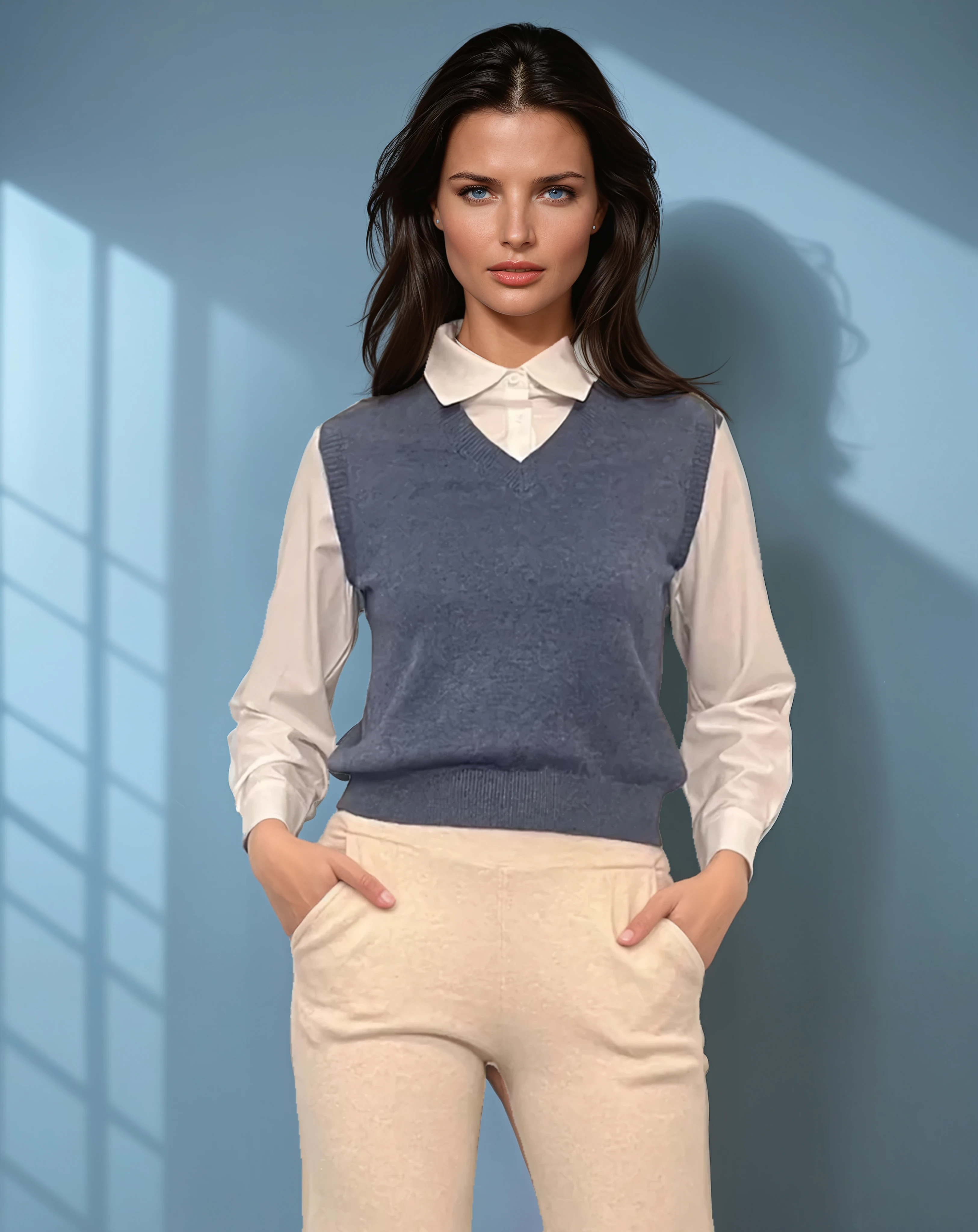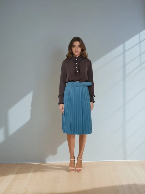 Cămașă elegantă din vâscoză subțire cu bandă de dantelă la gât bleu