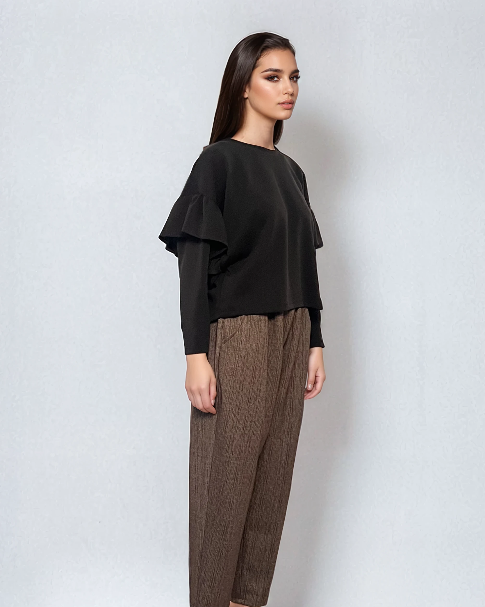 Bluză largă office din mix de vâscoză cu clapete decorative kaki