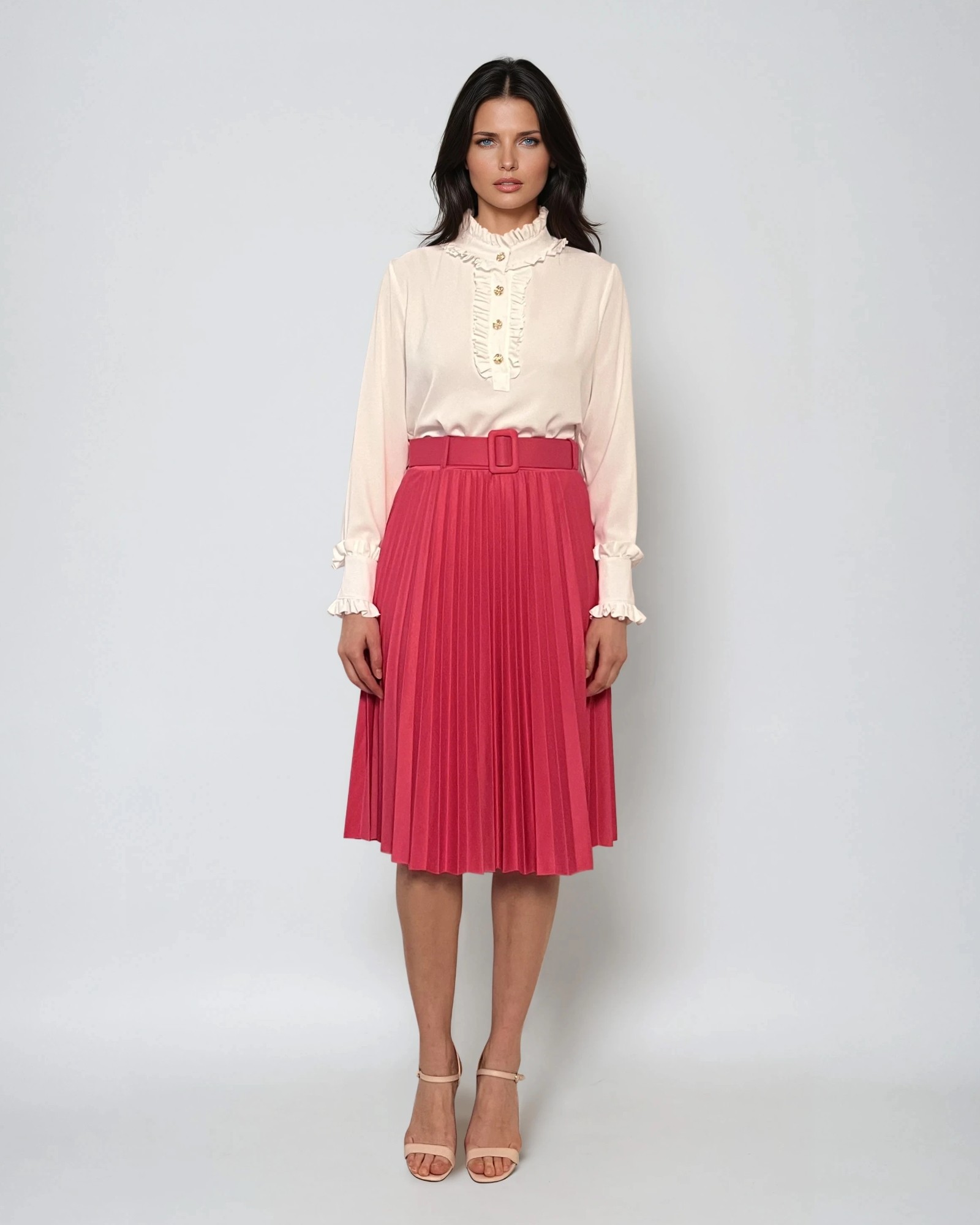 Bluză largă office din mix de vâscoză cu clapete decorative beige