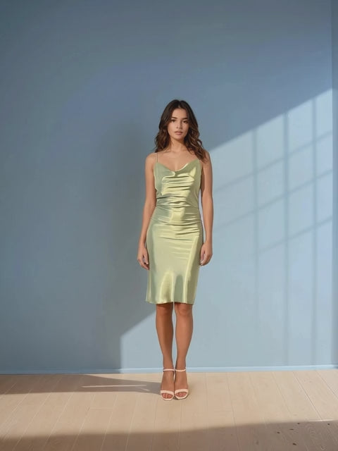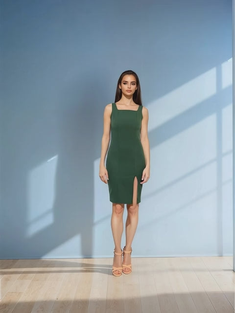 Rochie asimetrică cu bretele subțiri și slit pe picior negru