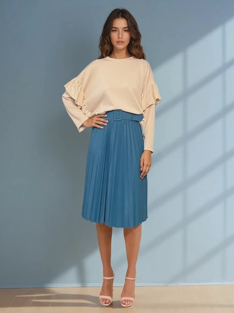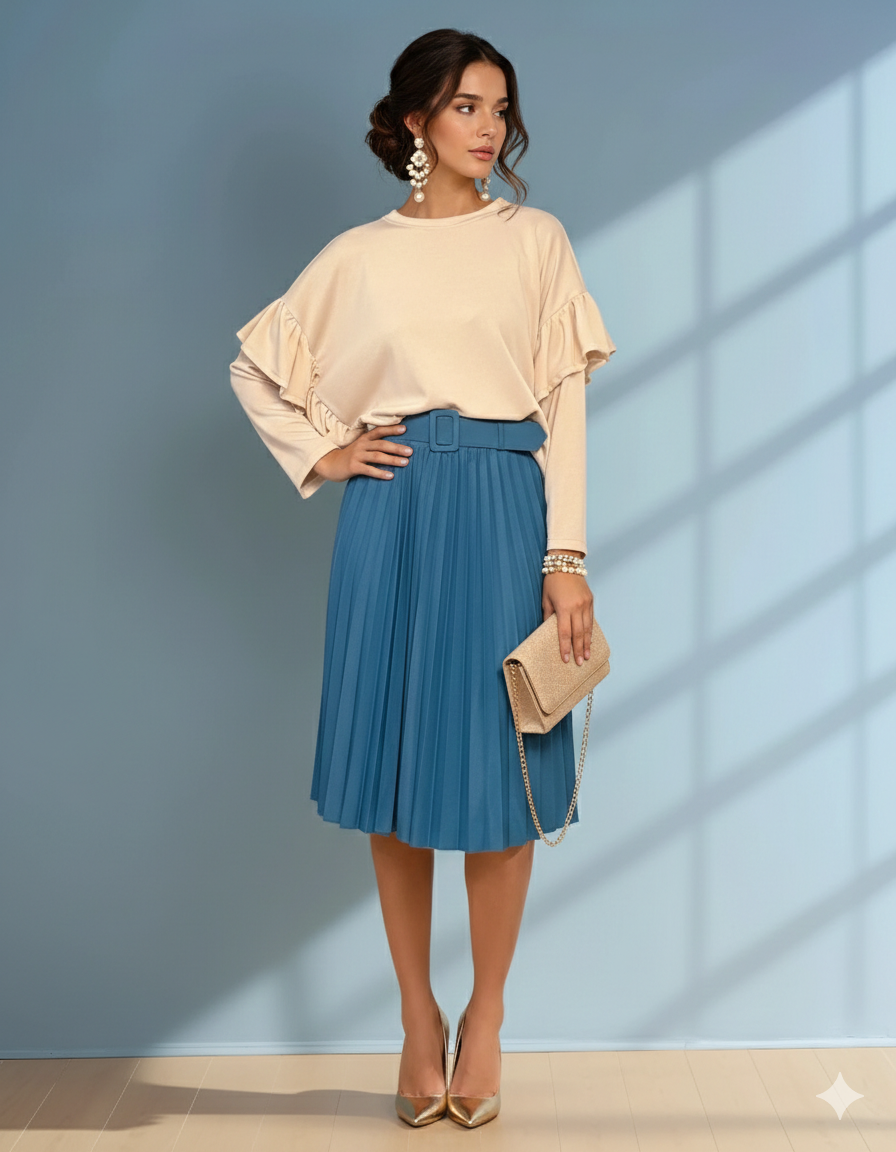 Nuanța crem luminează subtil outfitul și permite combinații versatile, de la pantaloni casual până la fuste fluide. Mânecile lungi completează designul armonios și oferă echilibru întregii siluete.