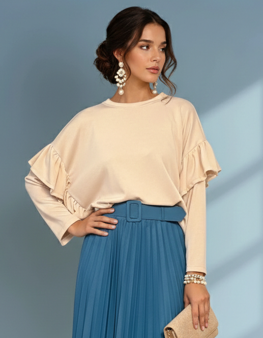 Bluză largă cu volan la umeri crem