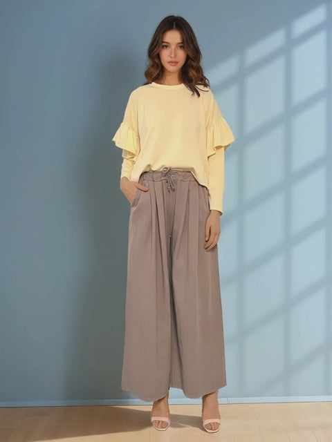 Bluză largă cu volan la umeri galbenă aduce energie și prospețime garderobei tale. Designul lejer este pus în valoare de volanul decorativ din zona umerilor, care oferă volum și un aer romantic.