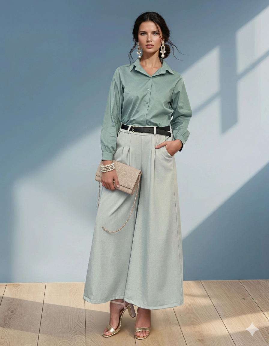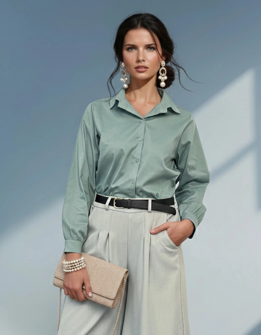Cămașă din bumbac poplin cu mânecă lungă aqua aduce un plus de prospețime și stil garderobei tale. Poplinul oferă structură și eleganță discretă, iar croiala lejeră asigură confort zilnic. Ideală pentru birou sau ținute casual chic.