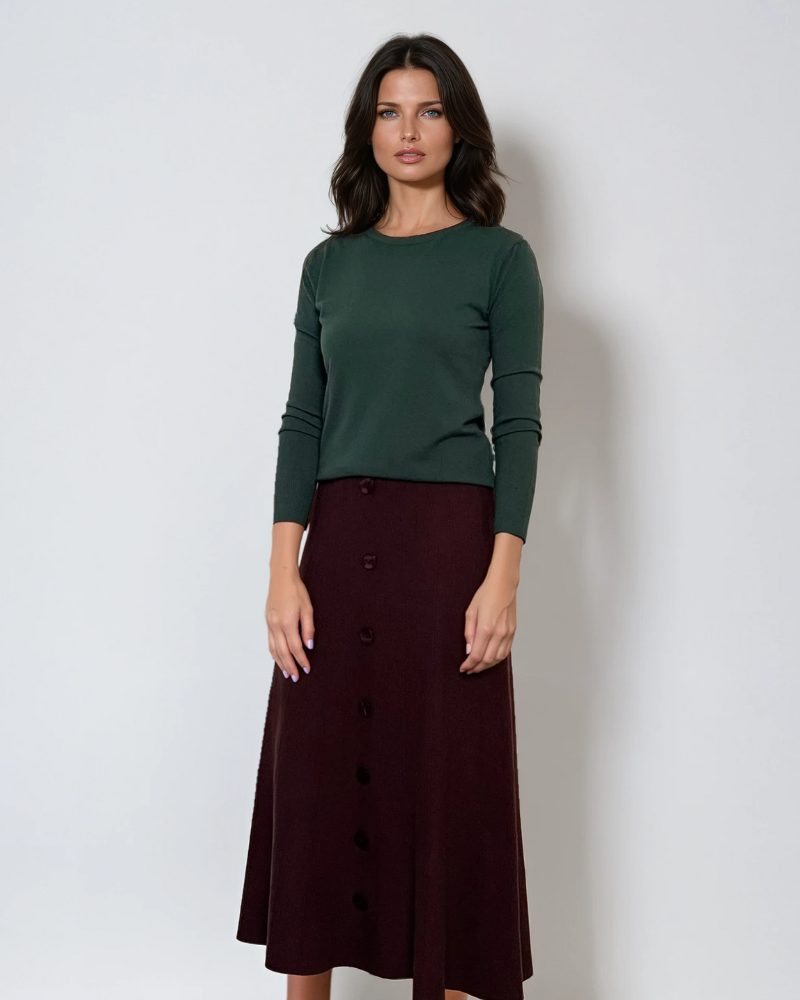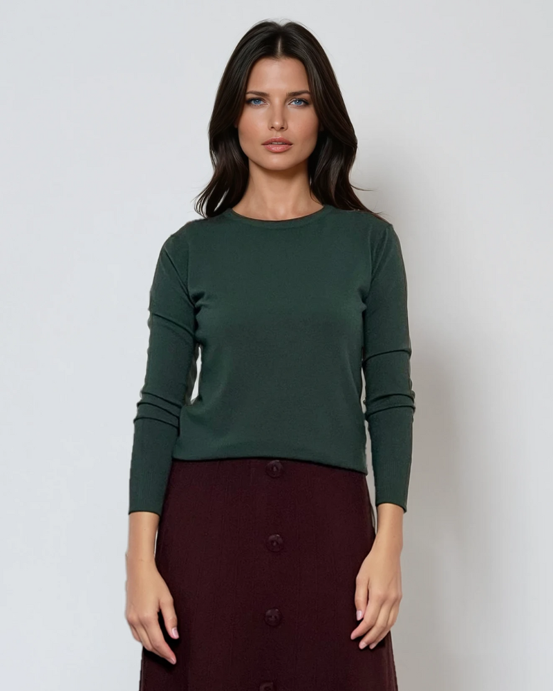 Pulover călduros guler rotund verde dark oferă un echilibru perfect între simplitate și eleganță. Materialul moale din mix de viscoză îl face extrem de plăcut la purtare, iar croiala dreaptă avantajează orice tip de siluetă.