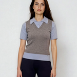Pulover cu mânecă scurtă, guler cămașă și nasturi gri