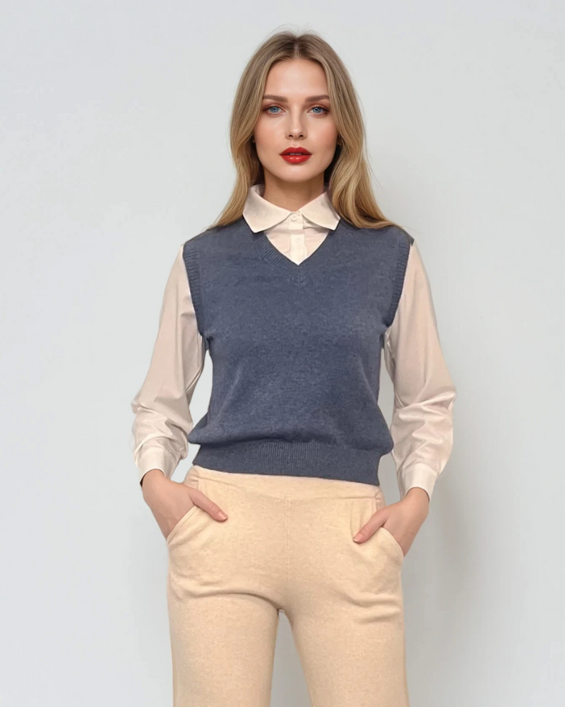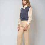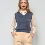Vestă cu mâneci si guler cămasă albastru
