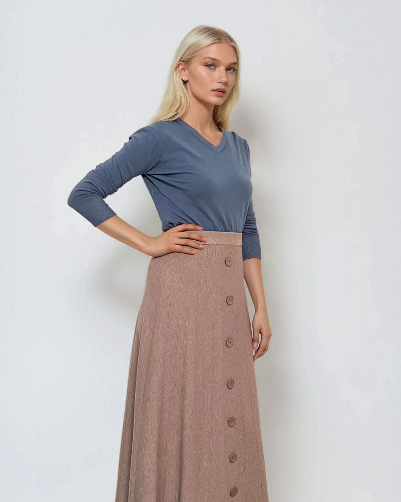 Pulover en-coeur cu nasturi pe mâneci albastru