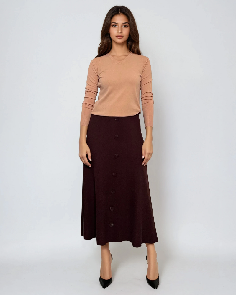 Pulover cu decolteu în V moale si confortabil mov-pruna