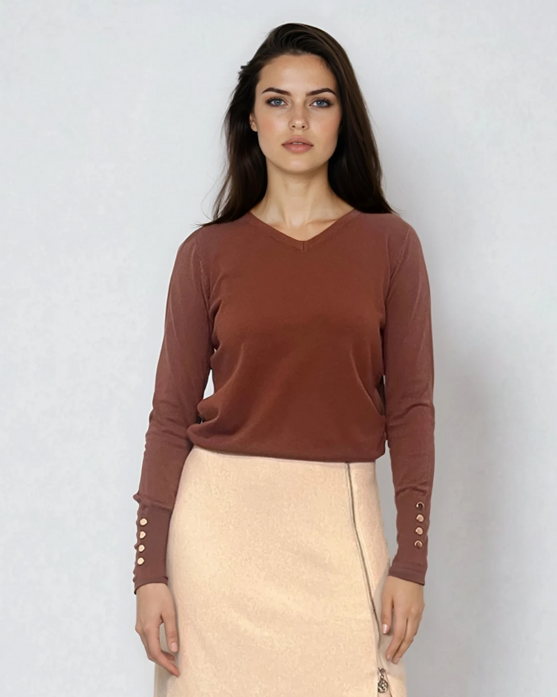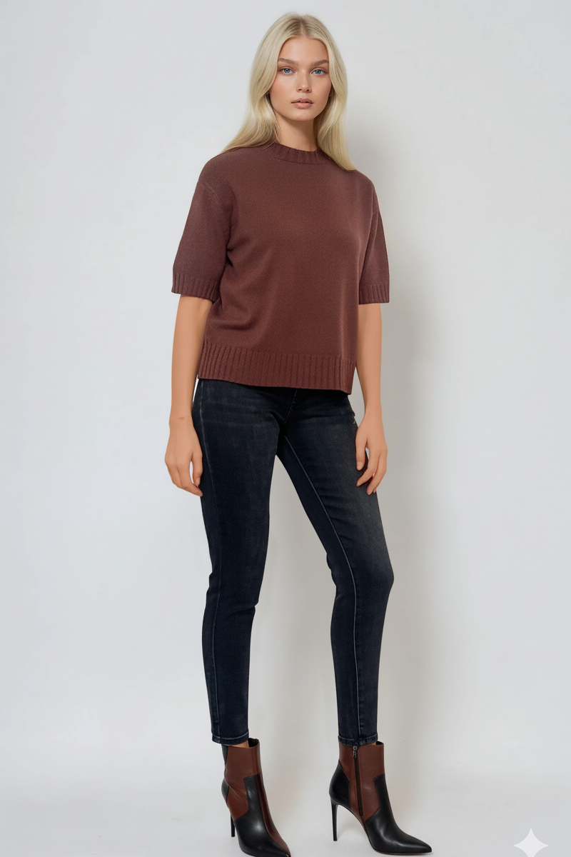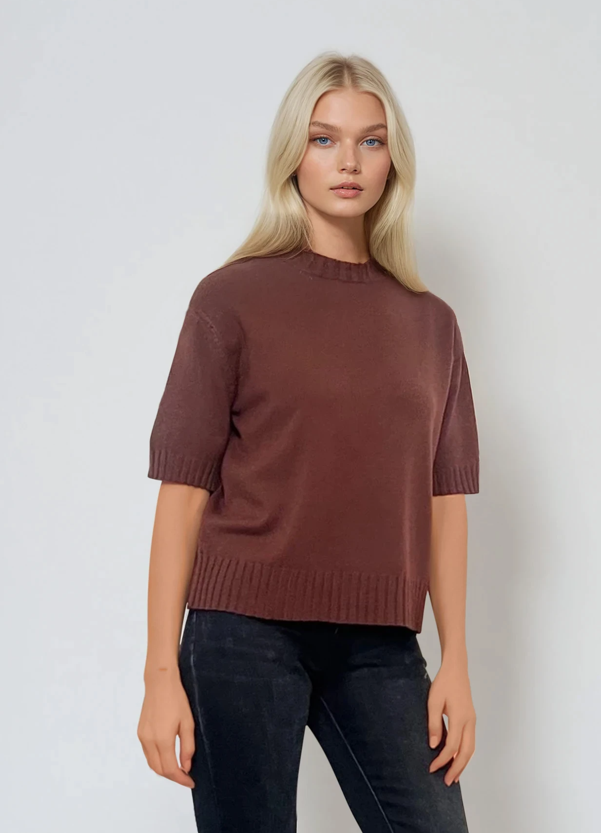 Pulover cu mânecă scurtă, guler cămașă și nasturi maro