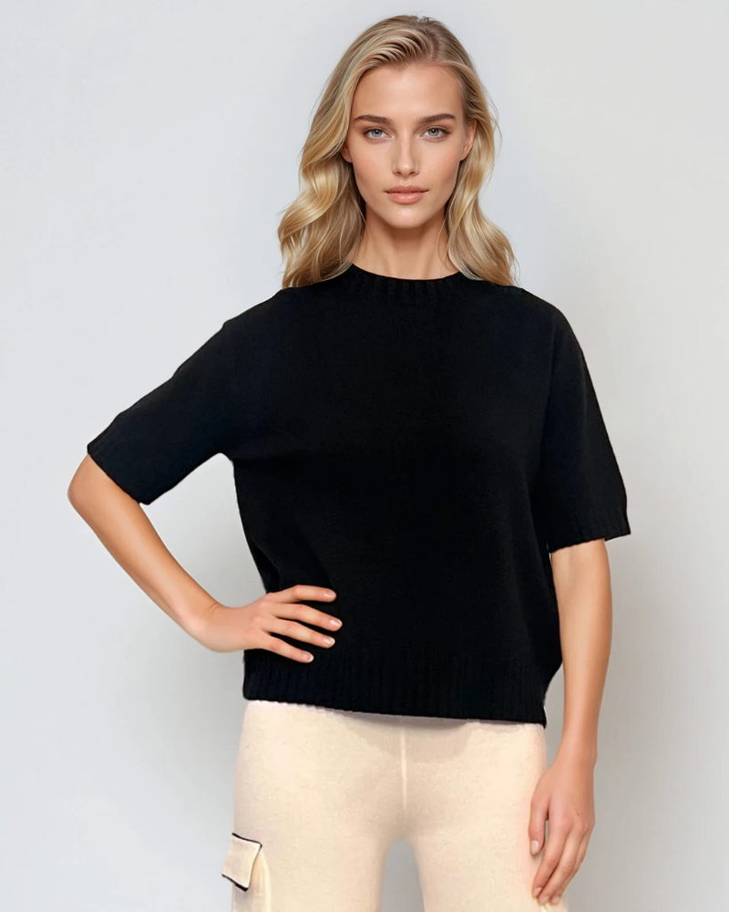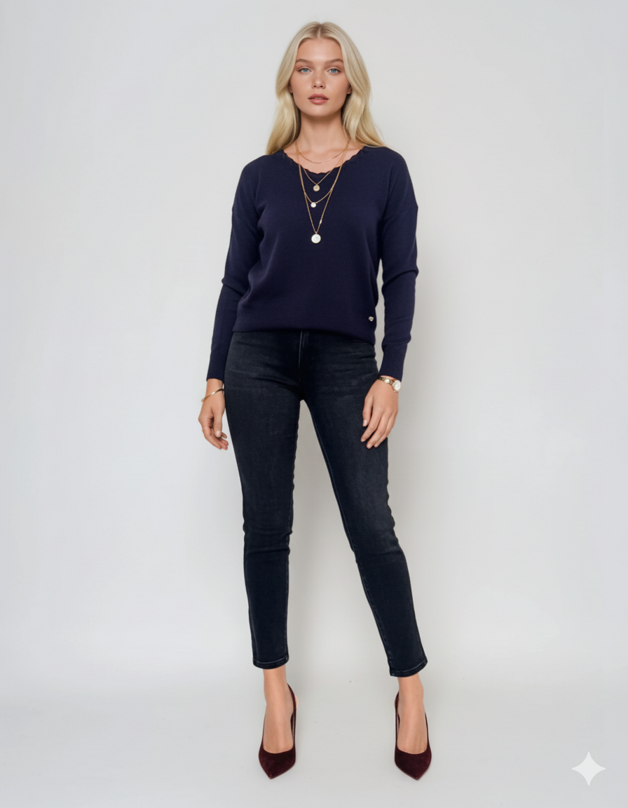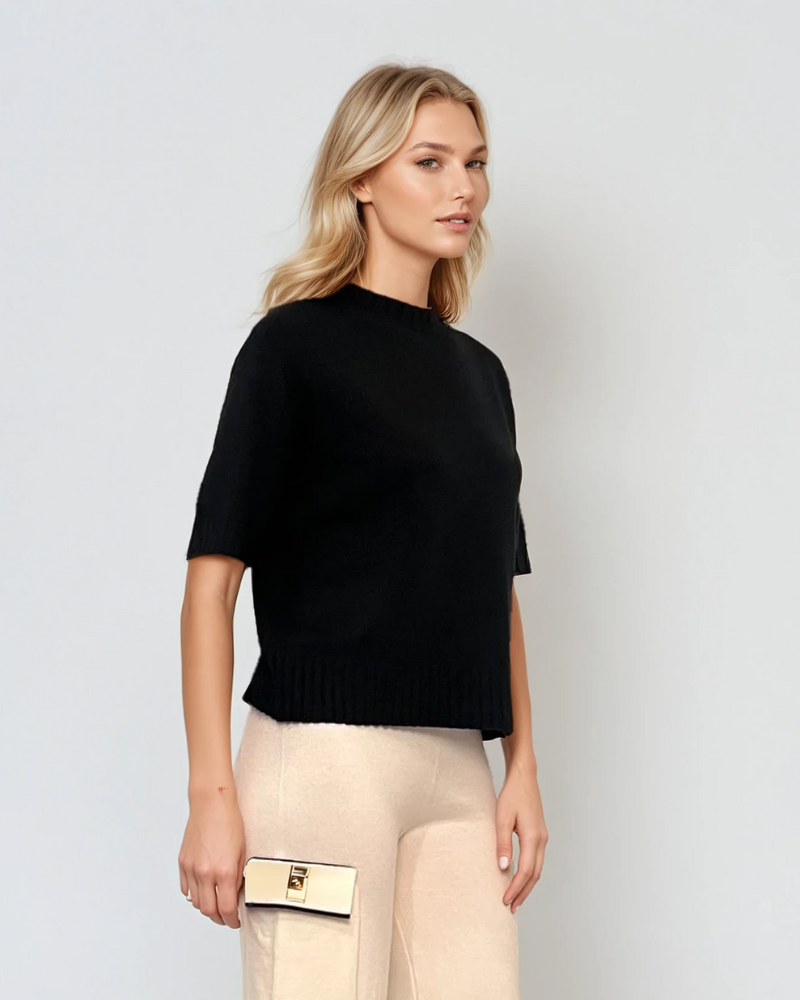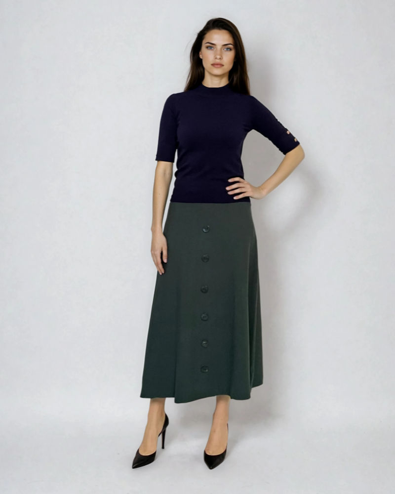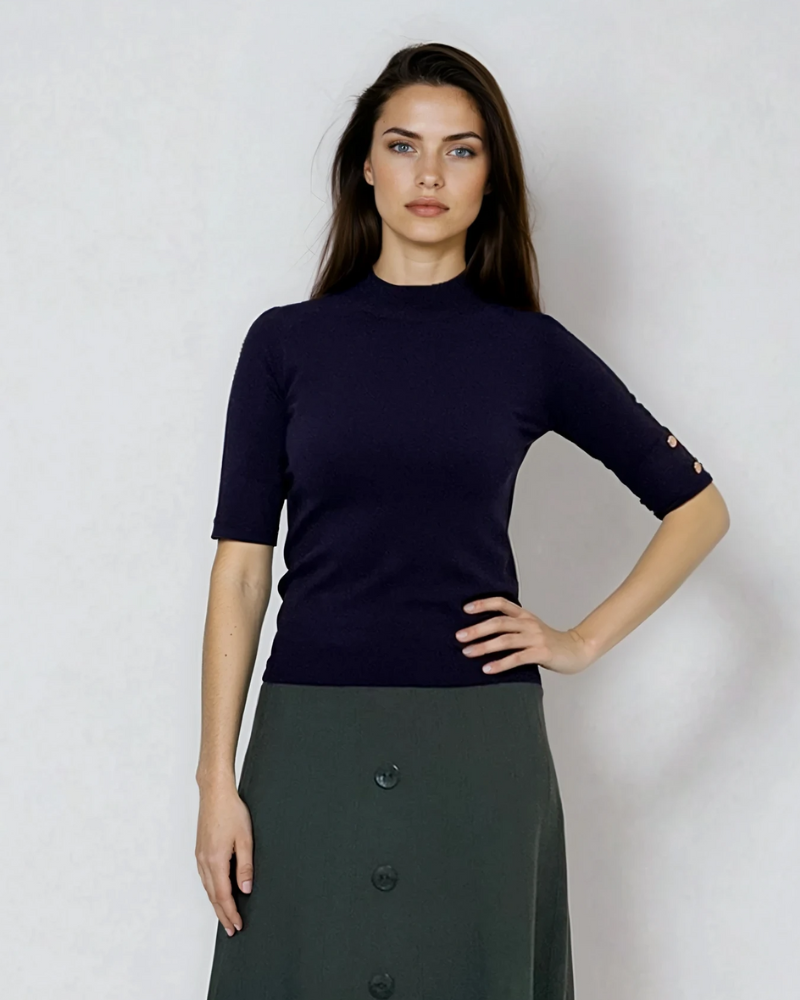 Pulover cu mânecă scurtă ?i nasturi aurii bleumarin