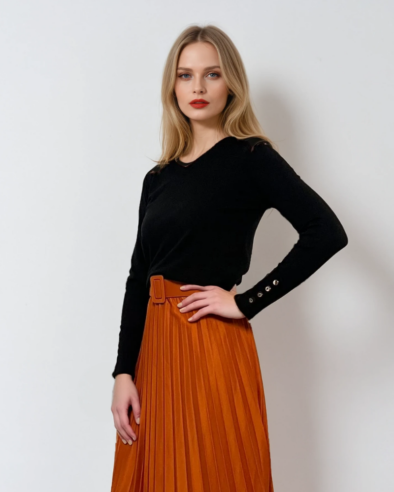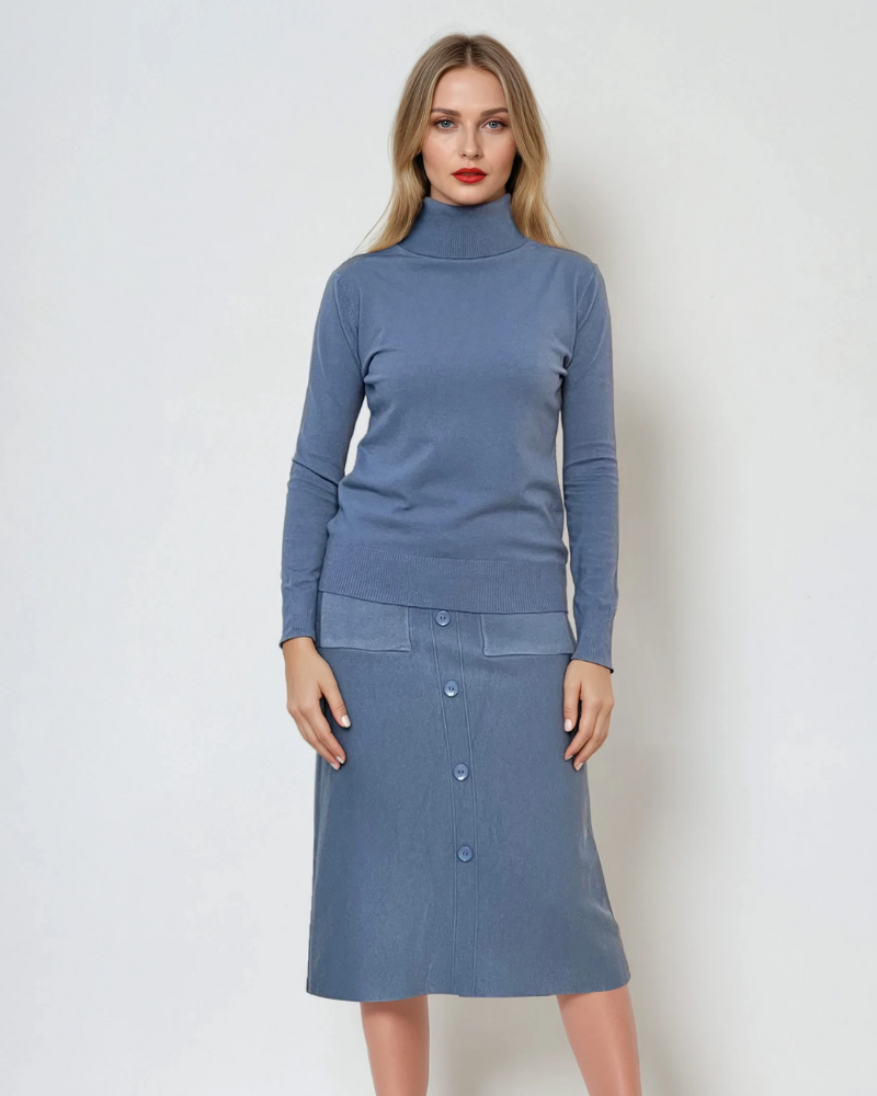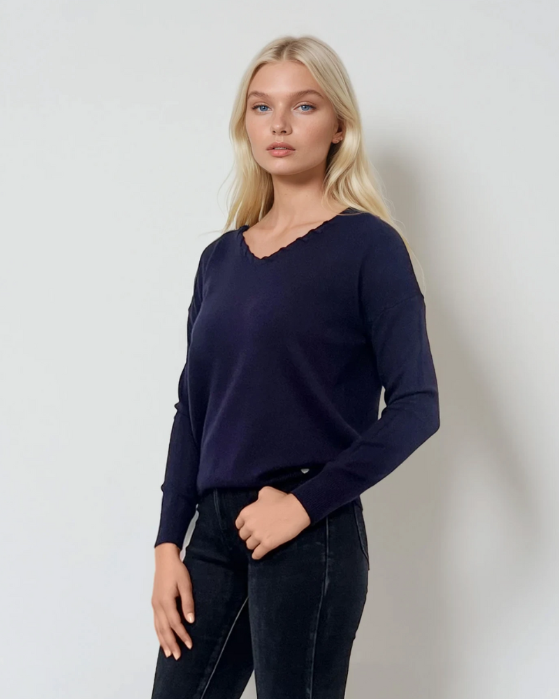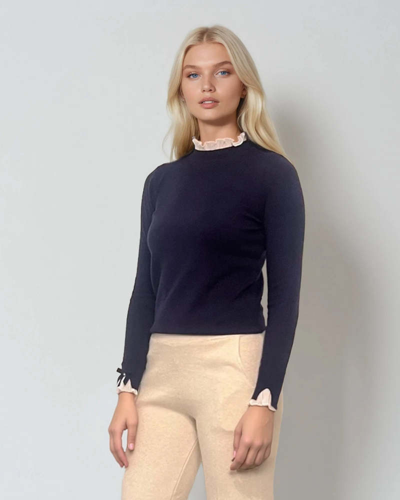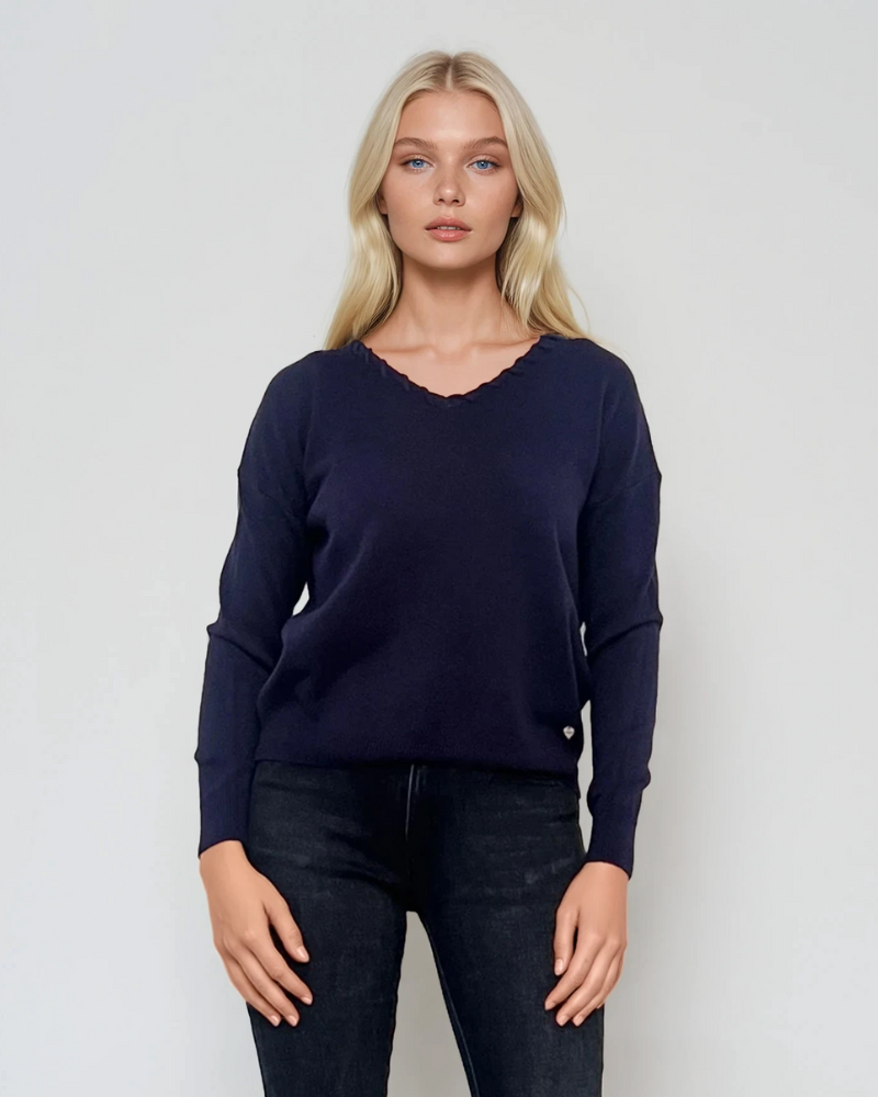 Pulover cu mânecă scurtă ?i nasturi aurii bleumarin
