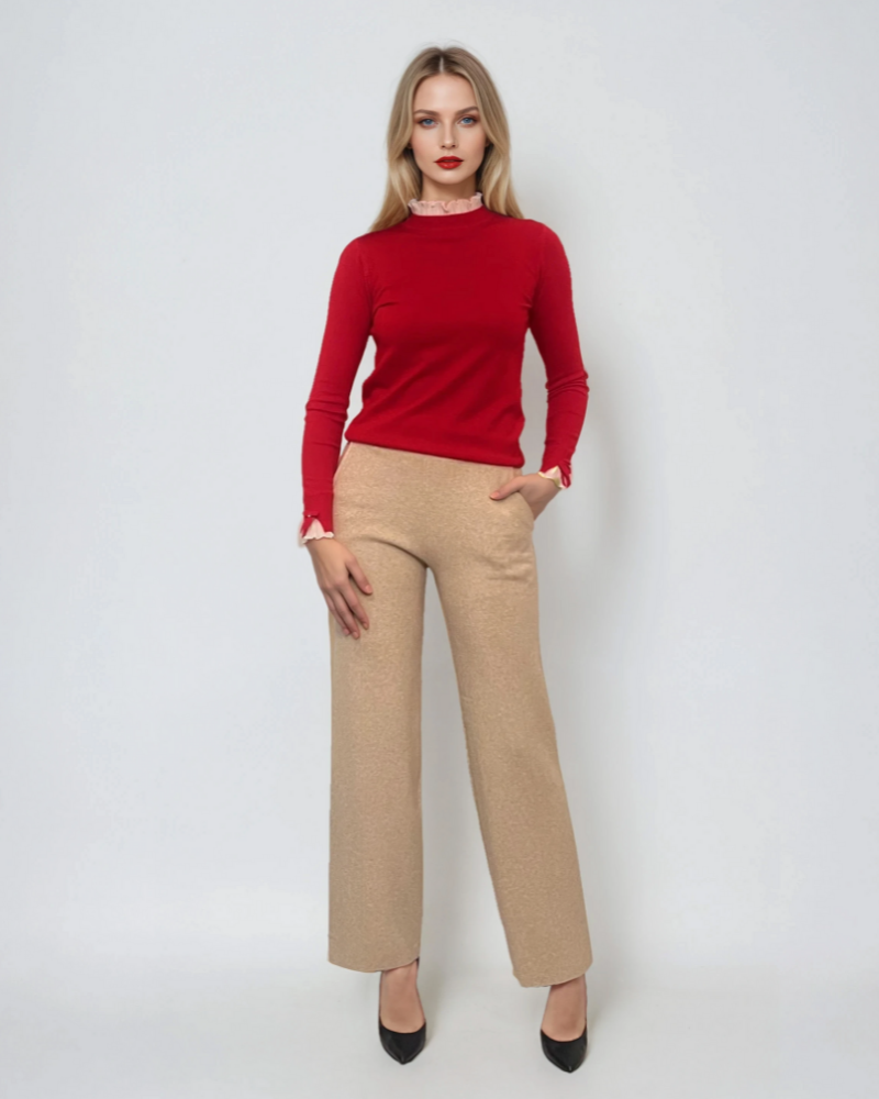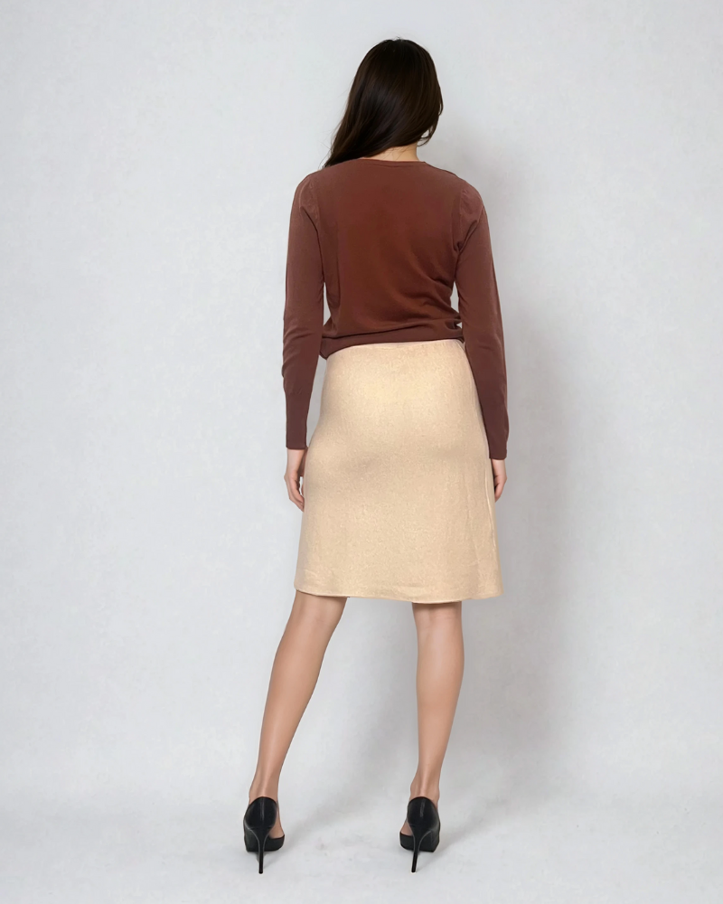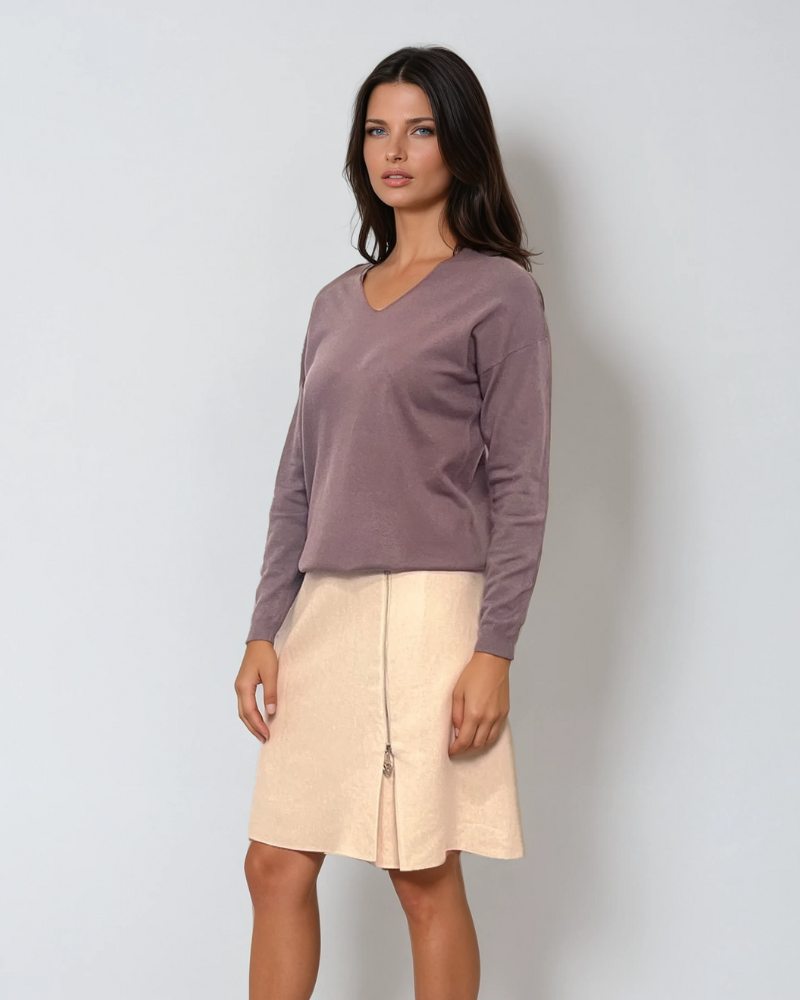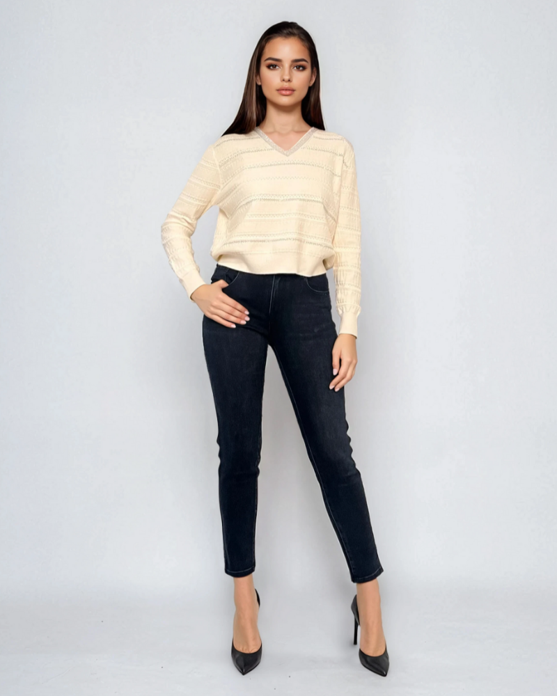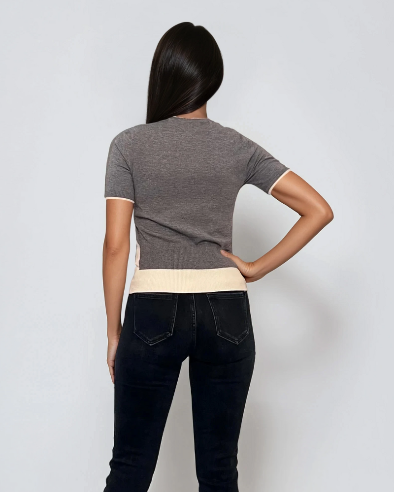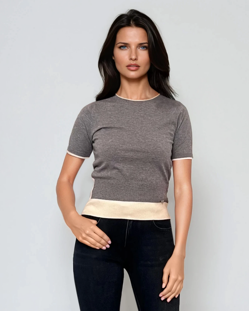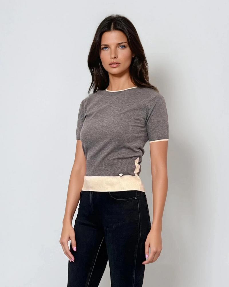 Pulover cu mânecă scurtă, guler cămașă și nasturi beige