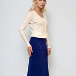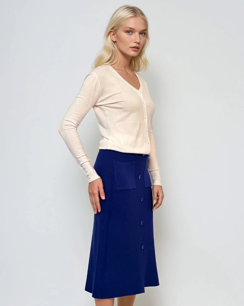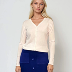 Jachetă basic cu decolteu și nasturi alb, feminină și luminoasă. Este ideală pentru completarea unui outfit elegant sau casual. Textura fină și croiala simplă o transformă într-o piesă esențială în sezonul rece.