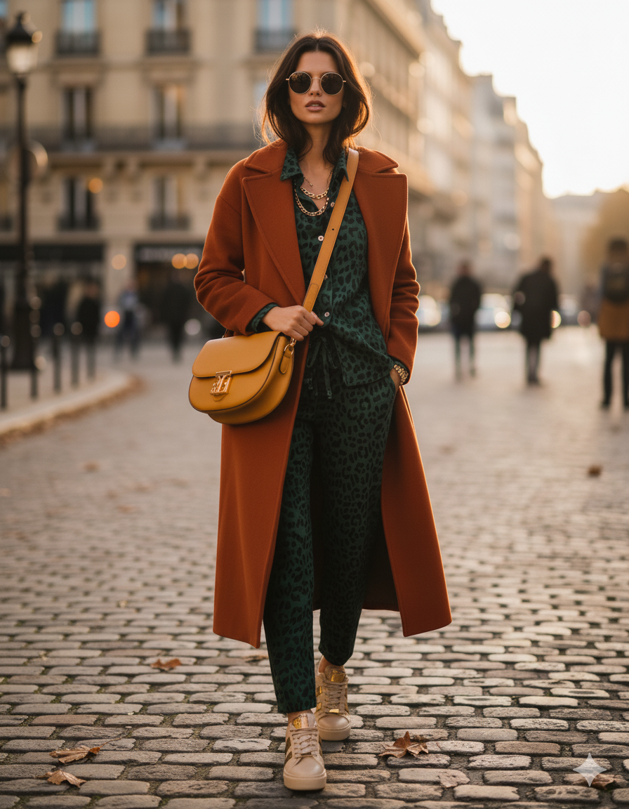 Perfect pentru o zi agitată în oraș sau întâlniri informale, acest compleu combină trendul animal print cu o culoare vibrantă.