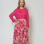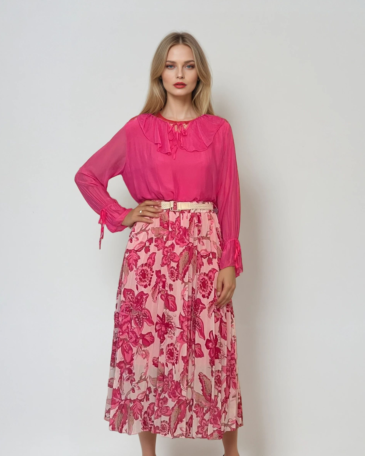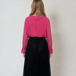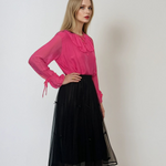 Bluza cu volan din mătase naturală și vascoză ciclam