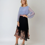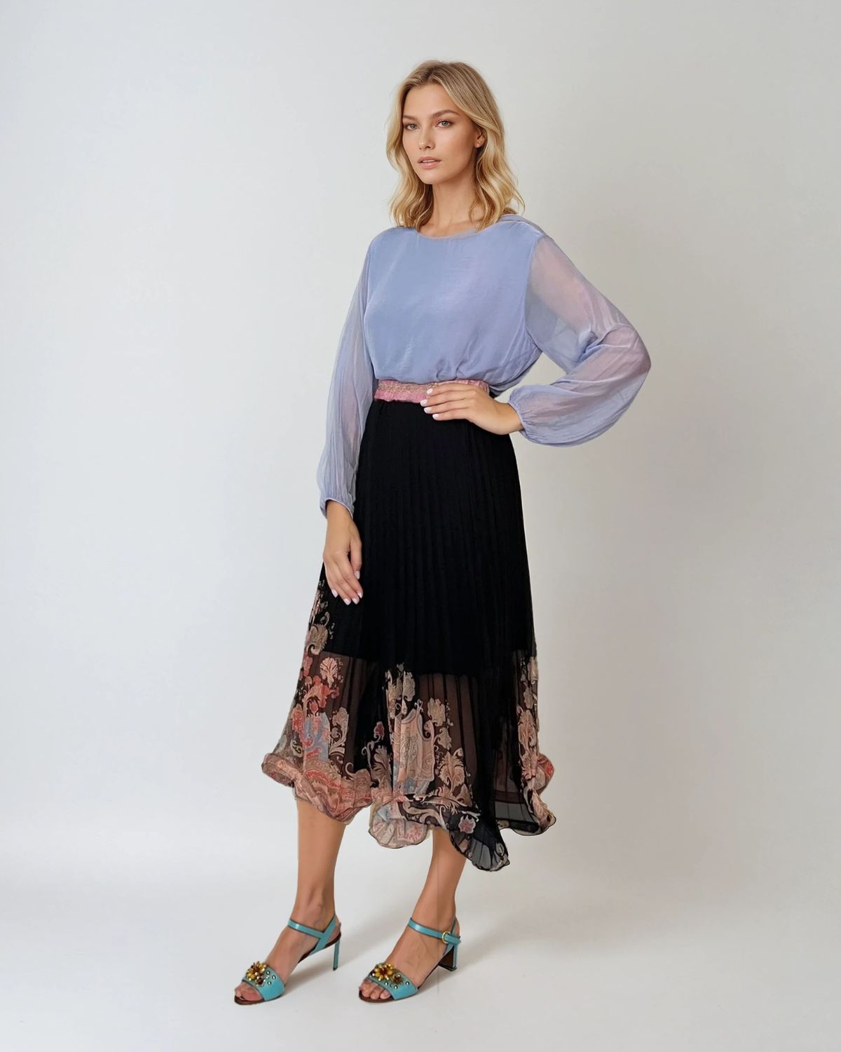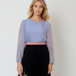 Bluză fluidă din mătase naturală și vascoză bleu