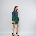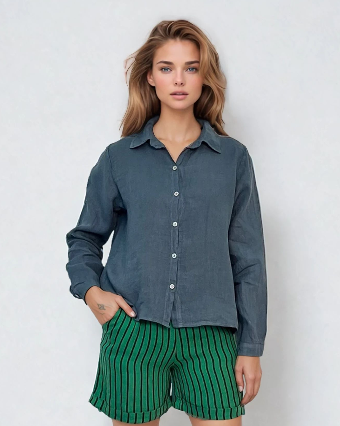 Cămașă largă cu pense pe spate albastru jeans se remarcă prin croiala lejeră și confortabilă, ideală pentru un look casual și modern. Designul cu pensă pe spate oferă o siluetă plăcută și un plus de eleganță unei piese versatile din garderobă.