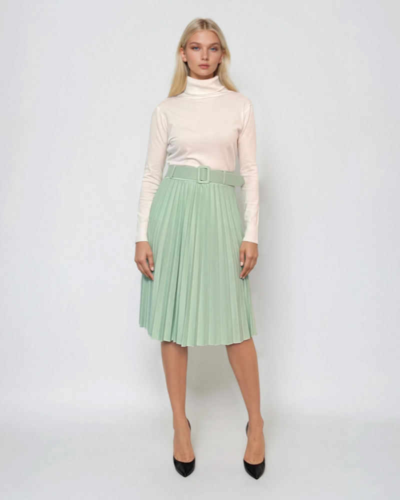 Fustă midi tricotată cu buzunare fistic